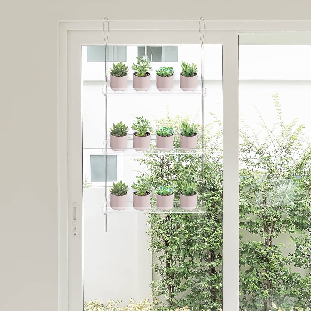 Amazon Com Hanging Acrylic Shelves For Windows Clear Window Wall Plant Stand Shelf For Kitchen Window 3 Tier Hanging Flower Display Plants Pots Holder Organizer For Succulents Herbs Grow Seedlings In Window